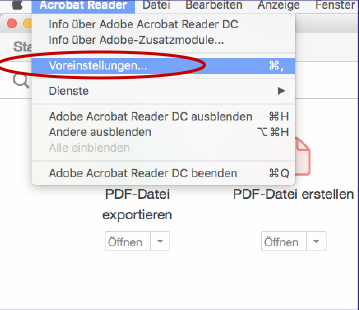 Acrobat Reader DC. Gehen Sie auf Adobe Reader und Voreinstellungen.... |