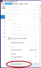 Acrobat Reader DC. Gehen Sie auf Adobe Reader und Voreinstellungen.... |