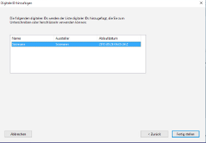 Unterschriften. Rechts daneben wählen Sie jetzt Identitäten und vertrauenswürdige Zertifikate und klicken auf Weitere. |